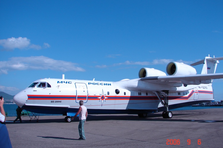На фото: самолет-амфибия Бе-200ЧС на гидроавиасалоне в г. Геленджик, 2006г.