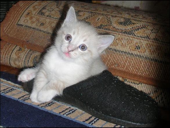 Котенок забрался в тапок-