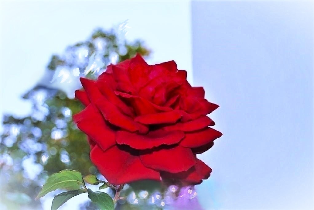 но крепкая цветущая роза на длинном толстом стебле с острыми шипами…