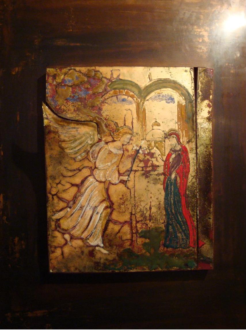"Благовещение".Медь, горячая эмаль,роспись. Автор-художник Высоцкая Г.К. Кечкемет.