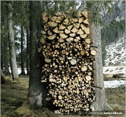 С одной поленницу держал древесный ствол,