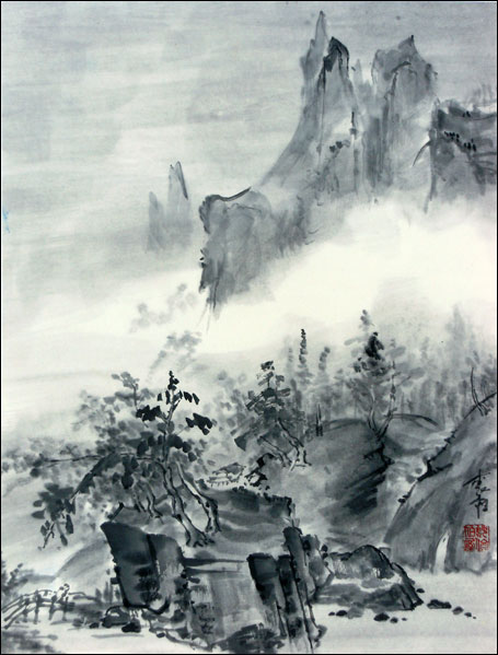 Под скалами сад.