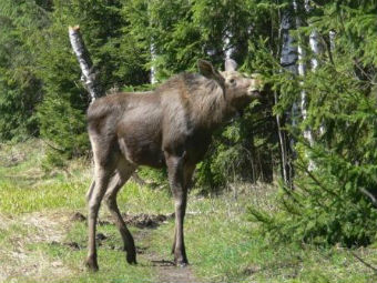 О появлении семейства из трех лосей с раннего утра 16 мая сообщали жители района Сокольники. Как сообщает корреспондент "Интерфакс", днем лоси расположились на газоне около дома 11а по улице Шумкина, а к 15:50 лосиху и лосенка видели на Старослободской улице.