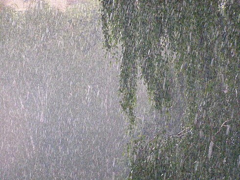 От шума сильного дождя.
