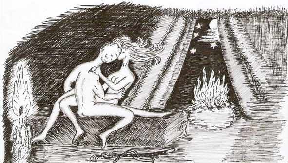 Только мы присели, вдруг Нинуш глянув на входную арку оживилась. Я глянул и увидел знакомого аккордиониста, который аккомпонировал Нинуш в ресторанах и других заказных мероприятиях.Я понял – это был заказ Нинуш. Она встала из-за стола, а аккордионист сразу сделал вступление и Нинуш выйдя на середину зала приняла позу в паузе.Музыка на миг замерла, но вдруг сорвалась вместе с Нинуш в огненном танце, таком огненном, что казалось с концов золотистых монист и с жемчужных нитей срывались, то искры, то брызги. Вот Нинуш в танце пролетая мимо нашего стола с вазой апельсинов, схватила в танце один апельсин и спрятала его в своём декольте, вдруг у неё появилась в правой руке красивая финка с золотой ручкой и Нинуш кружась возле меня и изображая в танце безысходную боль страданий от разлуки, выпятив бюст, ударила себя финкой в грудь, естественно – в апельсин и оставивив финку торчать, под возглас ужаса публики стала, так же недалеко от меня, кружась в танце, клониться на мостик и я поняв, подхватил её тело на руки и продолжил кружение. Замедляя кружение, я медленно опускал её ноги на пол, а остановившись, вынул нож из её груди и прильнул к её губам!