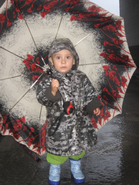 Дождевик и сапоги.