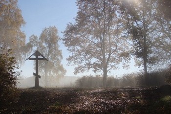 Над могилой... а дрозд, оседлал рядом крест,