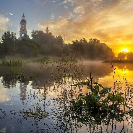 Заря, сверкая золотыми куполами
