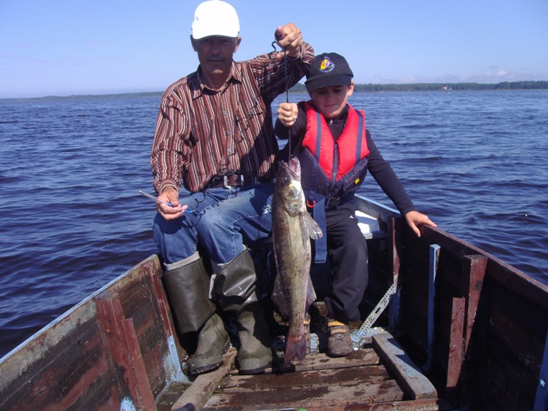 Тем не менее, мастер-класс состоялся. Надо было видеть - с каким интересом все наблюдали за моей борьбой с крупным хищником, который пару раз уходил на глубину до десяти метров, так ни разу и не показавшись. Наконец мой напарник с возгласом: "Судак!" - оправдал надежды своего внука и приподнял подсаком полосатого красавца. "В лодку его!" - поддался и я всеобщему настроению. Восторгу ребёнка не было предела! Он то и дело просил разрешения потрогать колючего хищника на 2,5 кг.