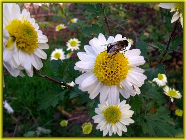 пчела, доверясь хризантеме,