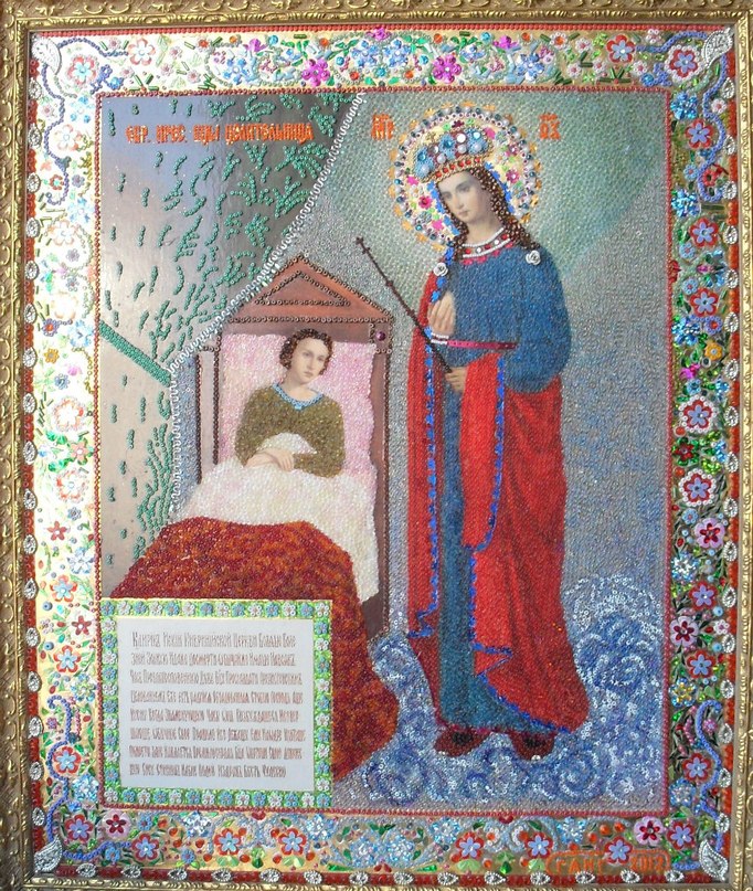 Икона авторская работа-мозаика из бисера.
