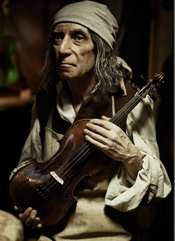 сухой рукой сжимая деку скрипки,