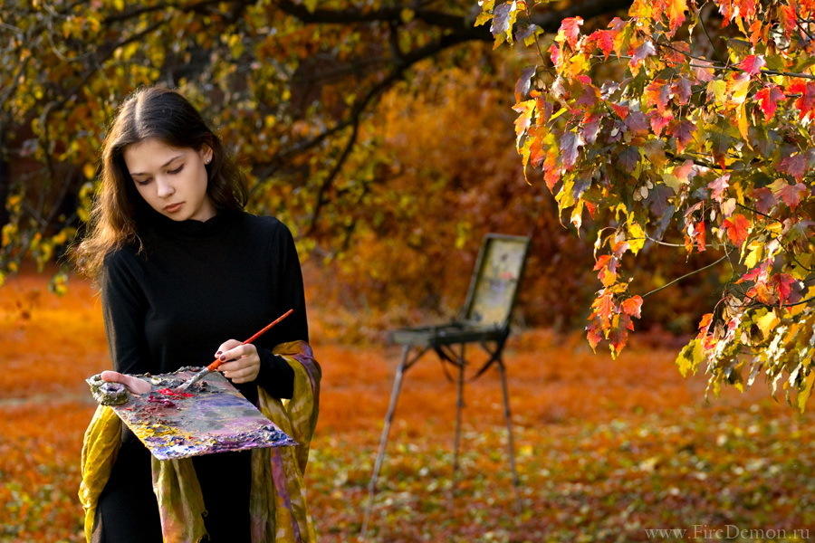 Девочка осень рисует