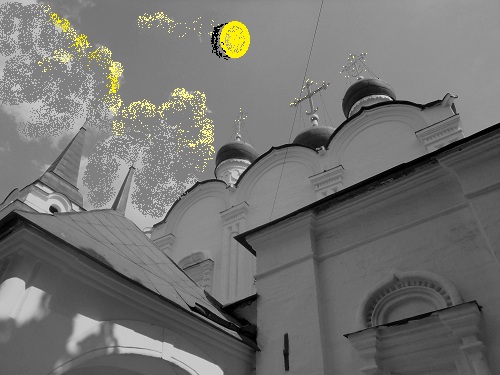 Лишь ангел-часовой взирает с башни,