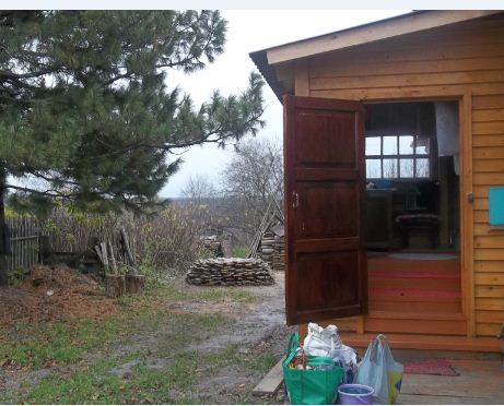 С крылечка прямо тропой к калитке,