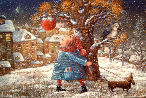 Кружится в воздухе снежок.