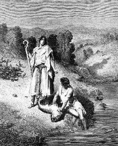 Товия спустился к воде, руки помыть