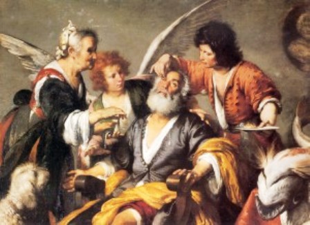 Товит пал на колени, обращаясь к Творцу: