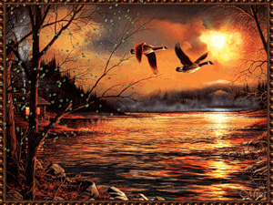 Большие кряквы сквозь туман прозрачный