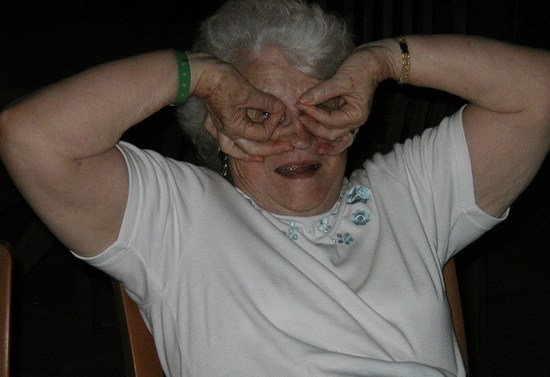 Смотрит баба Зина.