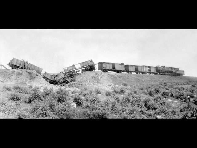 Состав,спешащий в город,полыхая,