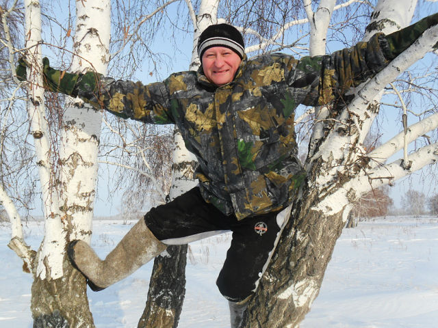 Я под берёзой в снегу,как мартышка,