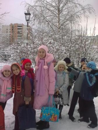 Раскрасневшись, играют в снежки.