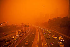 Распускается цветок утра лепестками автомобилей.