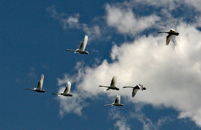 Стаи лебедей спешат на юг.