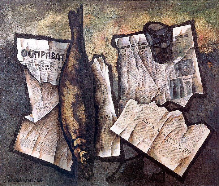*** Оскар Рабин, один из отцов современного русского авангарда, репрессированной после "Бульдозерной выствки". На иллюсторации одна из его работ.