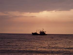 Вслед за шаландой кошёлкой волочится трал;