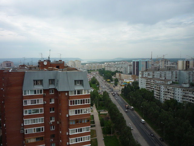 На авторском фото: вид на одну из улиц Самары с крыши высотки, вдали Волга