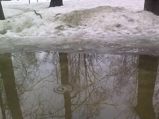 А по дорогам лужи,