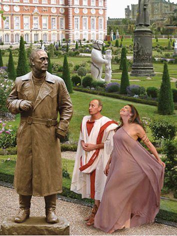 Сидит к музею всегда задом,