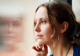 У окошка мечтая в поезде,