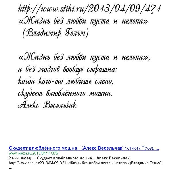 «Жизнь без любви пуста и нелепа»,