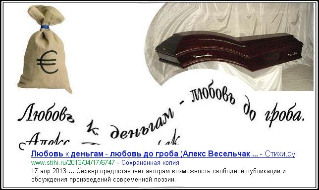 Любовь к деньгам - любовь до гроба