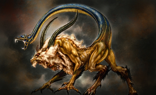 Голова льва, тело козы, и от змеи у нее хвост