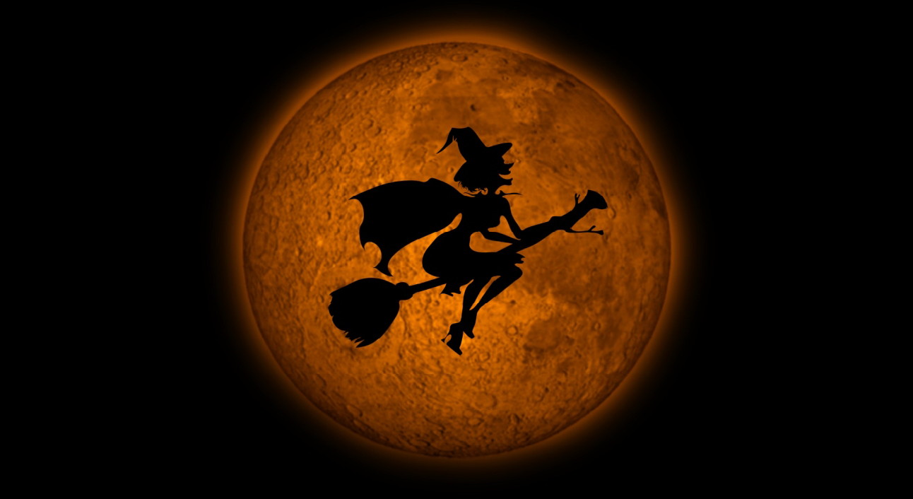 Вот летит на метелке ведьма,