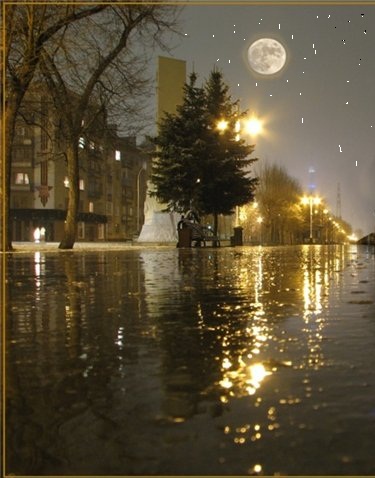 Застыл в зеркальных лужах,