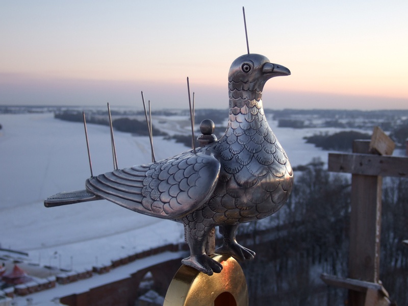 на кресте охраняет голубь...