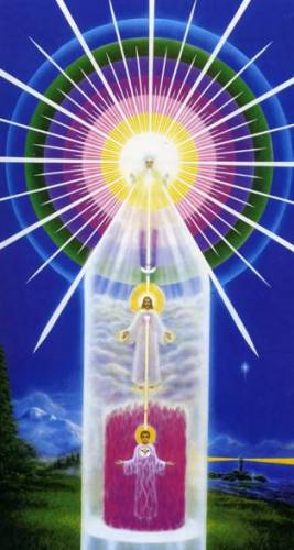 Визуализируя трехлепестковое пламя, представьте голубой лепесток слева. Он воплощает силу Бога и соответствует Отцу. Желтый лепесток в центре воплощает мудрость Бога и соответствует Сыну. Розовый лепесток — справа — воплощает любовь Бога и соответствует Святому Духу. Имея доступ к силе, мудрости и любви, закрепленным в трехлепестковом пламени, вы можете исполнить замысел своего бытия.