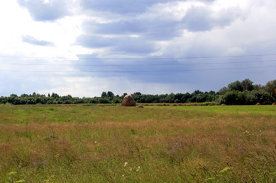 От закатанных в копны полей,