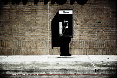 В расцарапанный таксофон;
