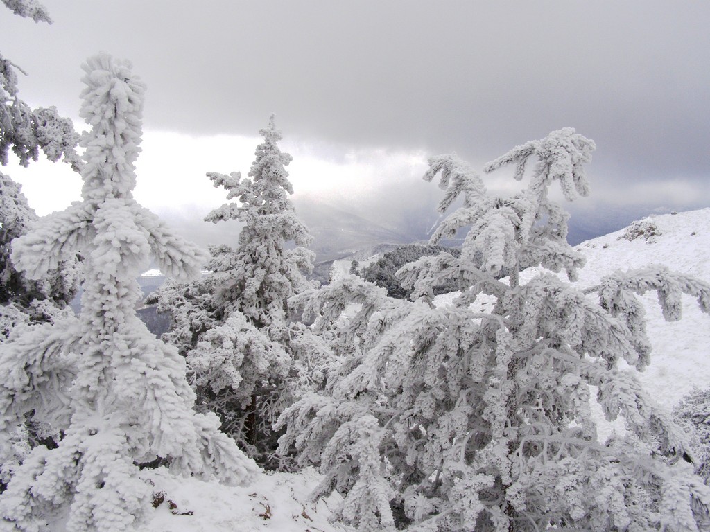"Эта снежная сказка была запечатлена мною высоко в горах за минуту до прихода бури... Потрясающе красиво... и тишина... такая неимоверная, что слышно, как тихим шорохом падают снежинки... это АБСОЛЮТНЫЙ ПОКОЙ."