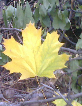 Клён машет веткой жёлтых листьев,