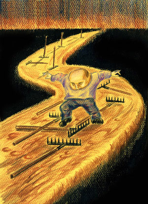 Даже на острющих граблях можно.