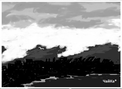 А чайка над мглою... парит...