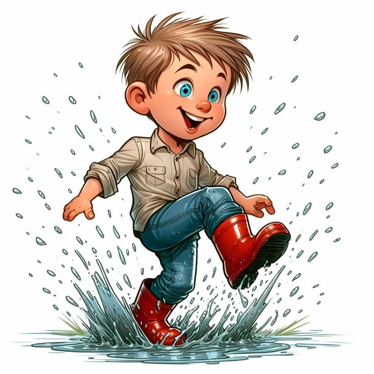 В лужи побежал скорей.