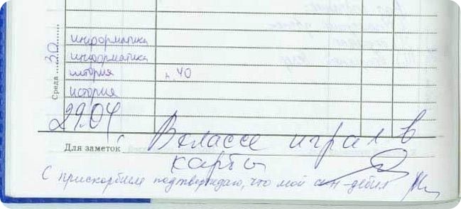 Вспомнила, как сыну писала учительница русского языка в дневнике: